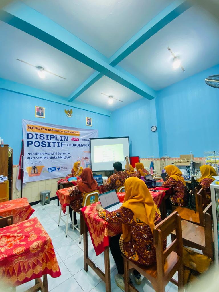 SLB Putra Mandiri Surabaya mengadakan pelatihan untuk guru tentang disiplin positif. pelatihan ini diadakan secara mandiri serta memanfaatkan Platform Merdeka Belajar sebagai sumber belajar. Disiplin positif adalah suatu pendekatan dalam mendidik dan mengelola perilaku anak atau individu dengan menggunakan strategi yang bersifat membangun, mendukung, dan mengajarkan keterampilan hidup positif. Pendekatan ini fokus pada pembentukan hubungan yang positif antara orang tua, guru, atau pemimpin dengan anak atau individu, serta mempromosikan tanggung jawab pribadi dan pembelajaran dari kesalahan.