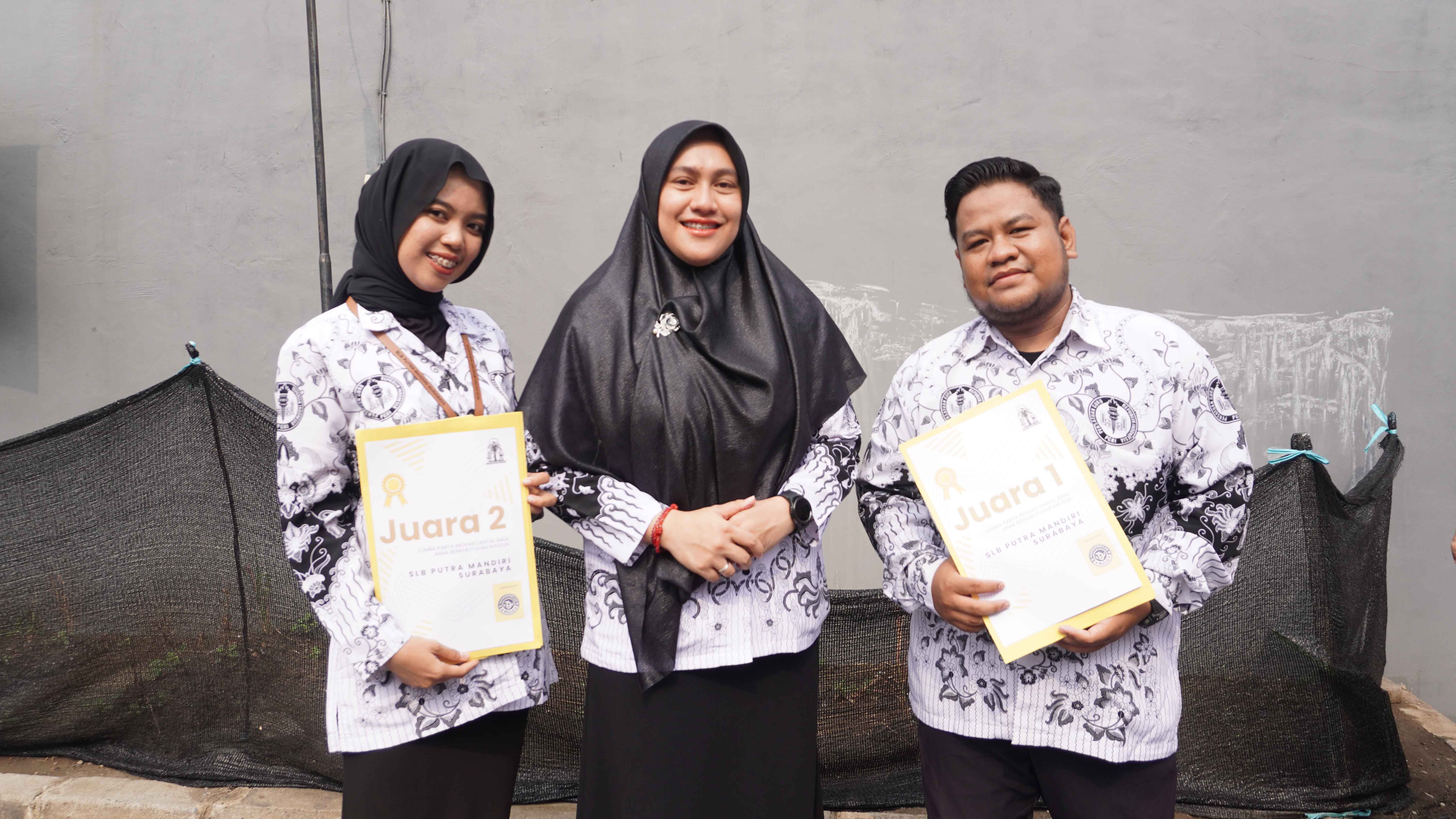 Setelah upacara, dilakukan pengumuman pemenang lomba dan penyerahan penghargaan kepada para juara. Pak Nur Ramadhani Ash Siddieqy sebagai juara pertama dan Bu Heny Purnamasari sebagai juara kedua menerima penghargaan tersebut dengan rasa bangga. Momen ini menjadi sorotan penting dalam perayaan, sekaligus inspirasi bagi guru-guru lain untuk terus berkarya dan berinovasi.