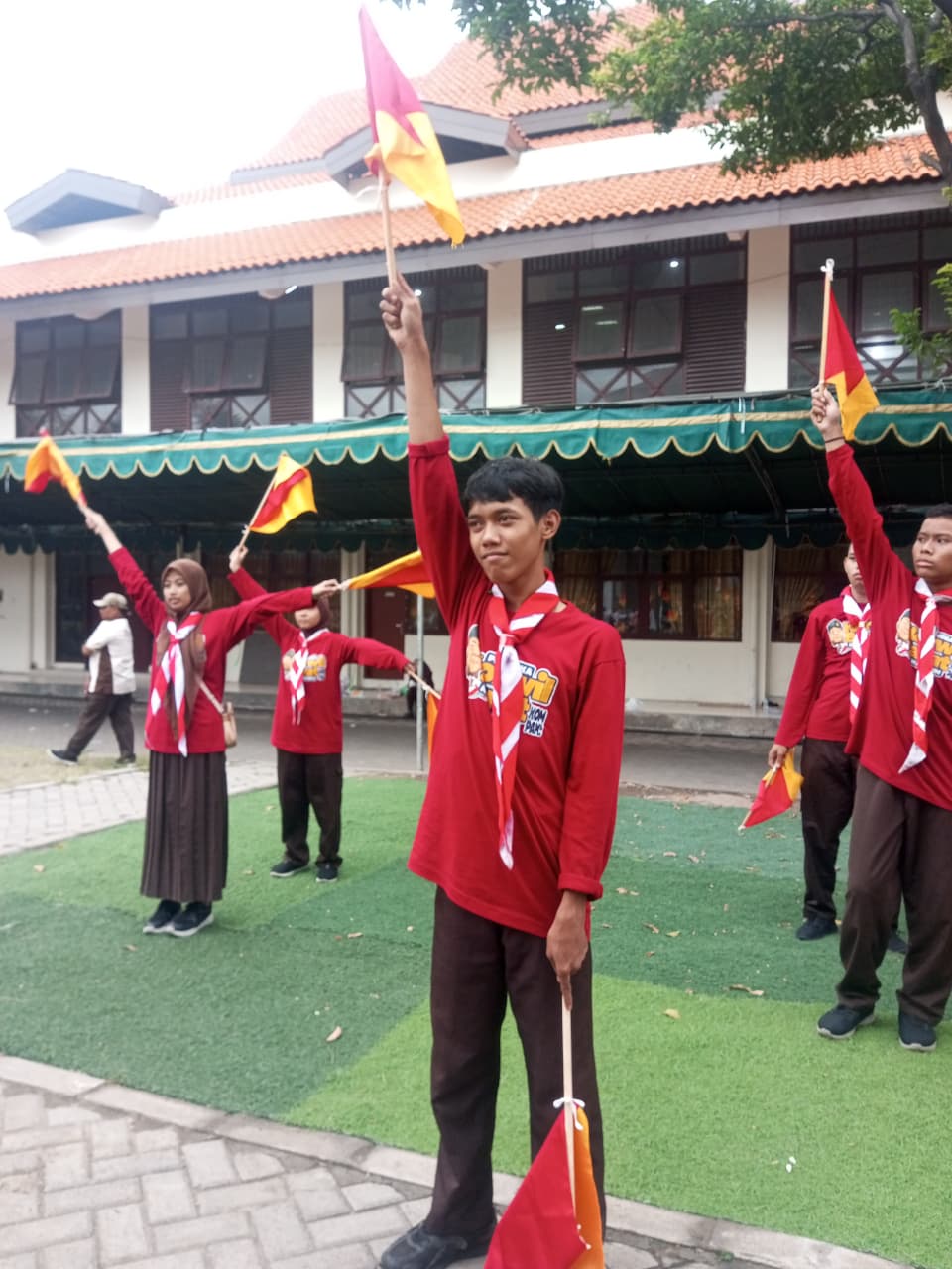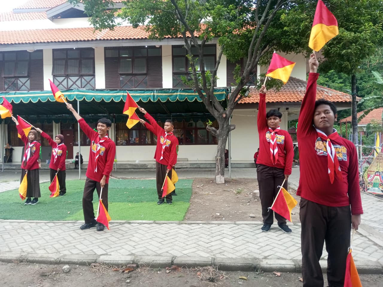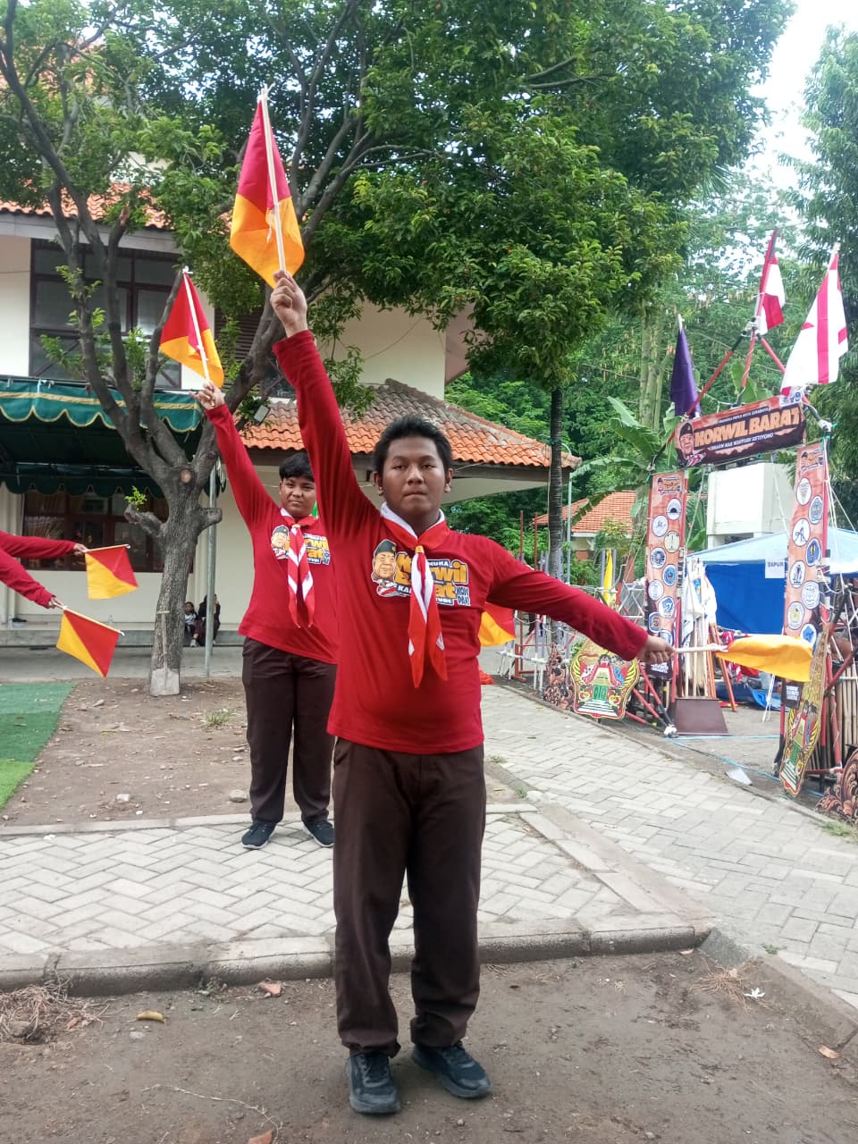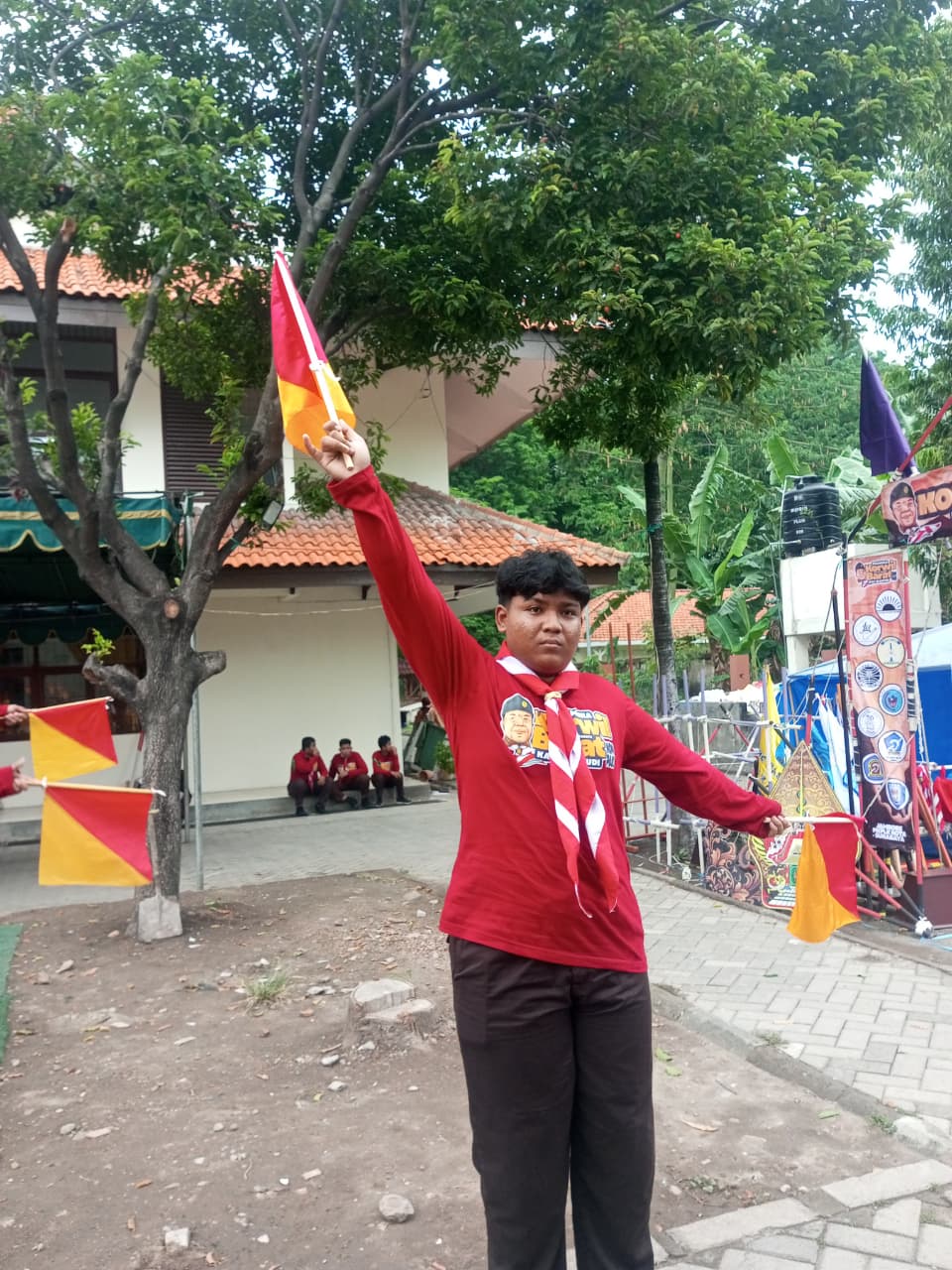 Tak kalah menarik, kegiatan semaphore atau komunikasi menggunakan bendera juga menjadi bagian penting dari perkemahan ini. Peserta belajar menyampaikan pesan dengan gerakan tangan terkoordinasi, melatih kemampuan fokus, koordinasi, dan kecepatan berpikir.